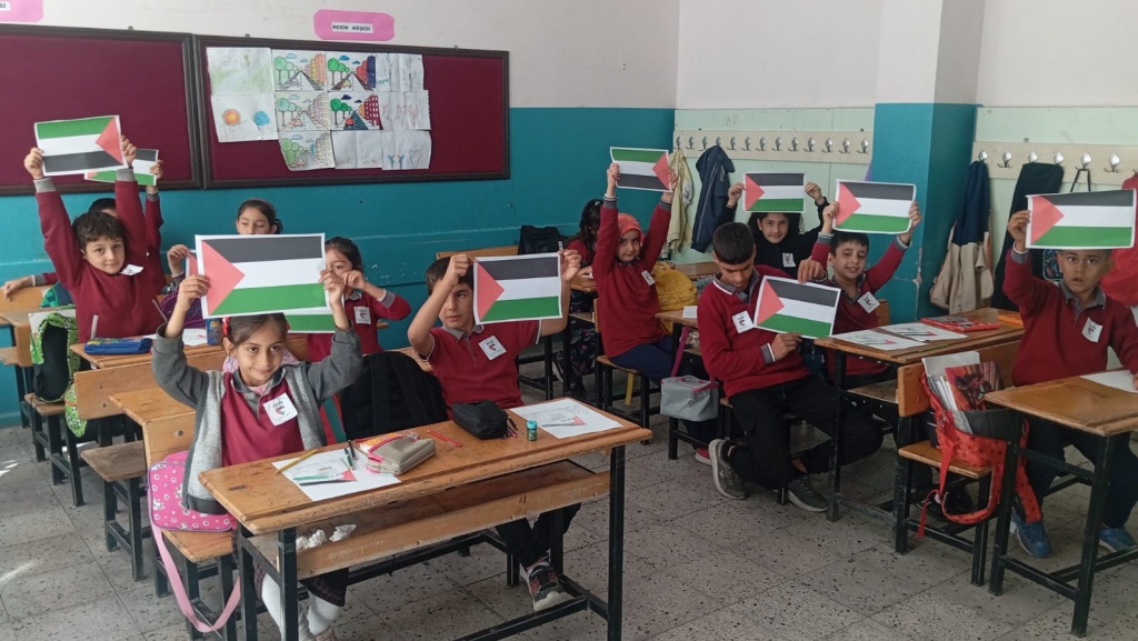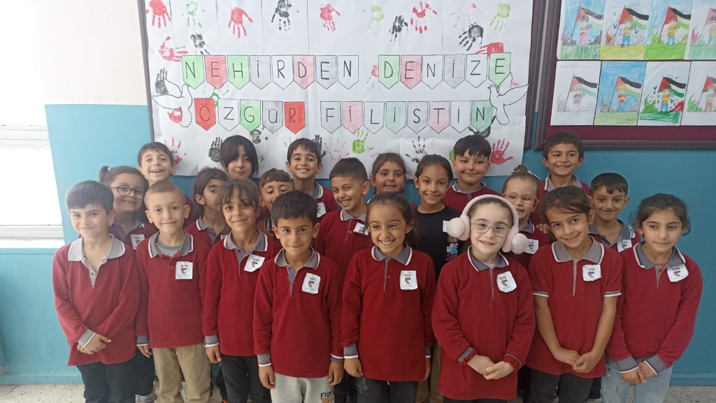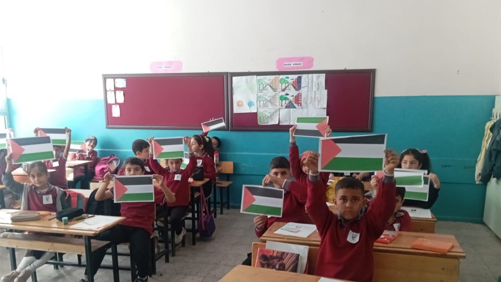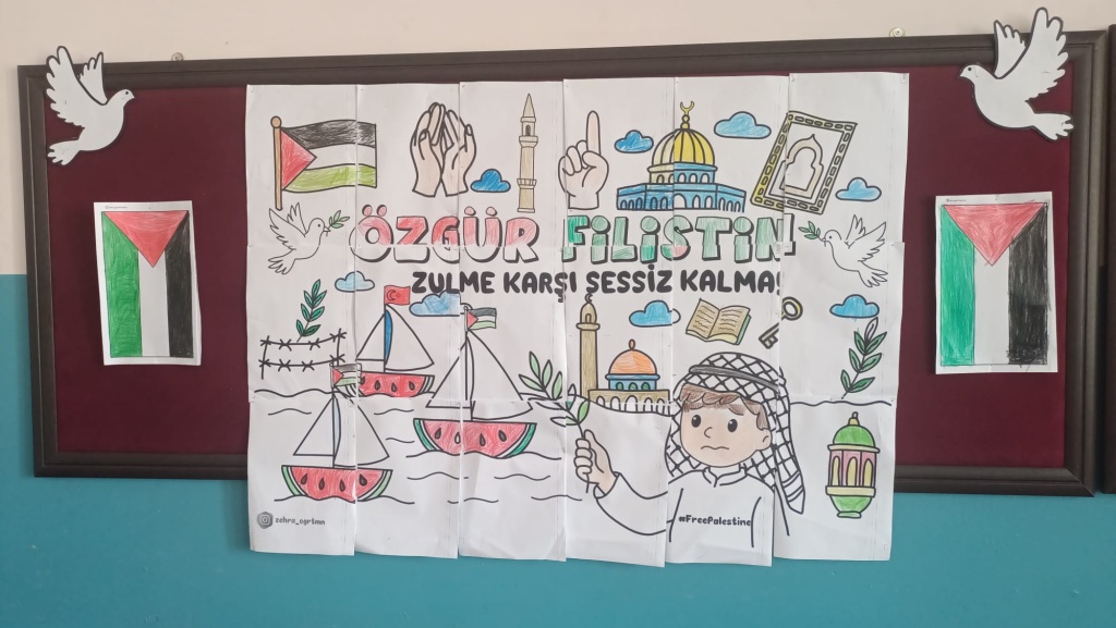 Mimar Sinan Ortaokulu’nda Filistin’de yaşanan insani krizlere dikkat çekmek amacıyla “Filistin Farkındalık Etkinlikleri” gerçekleştirildi. Etkinlik kapsamında öğrenciler, hazırladıkları afiş, pankart ve slogan kartlarıyla Filistin halkına destek mesajı verdi.